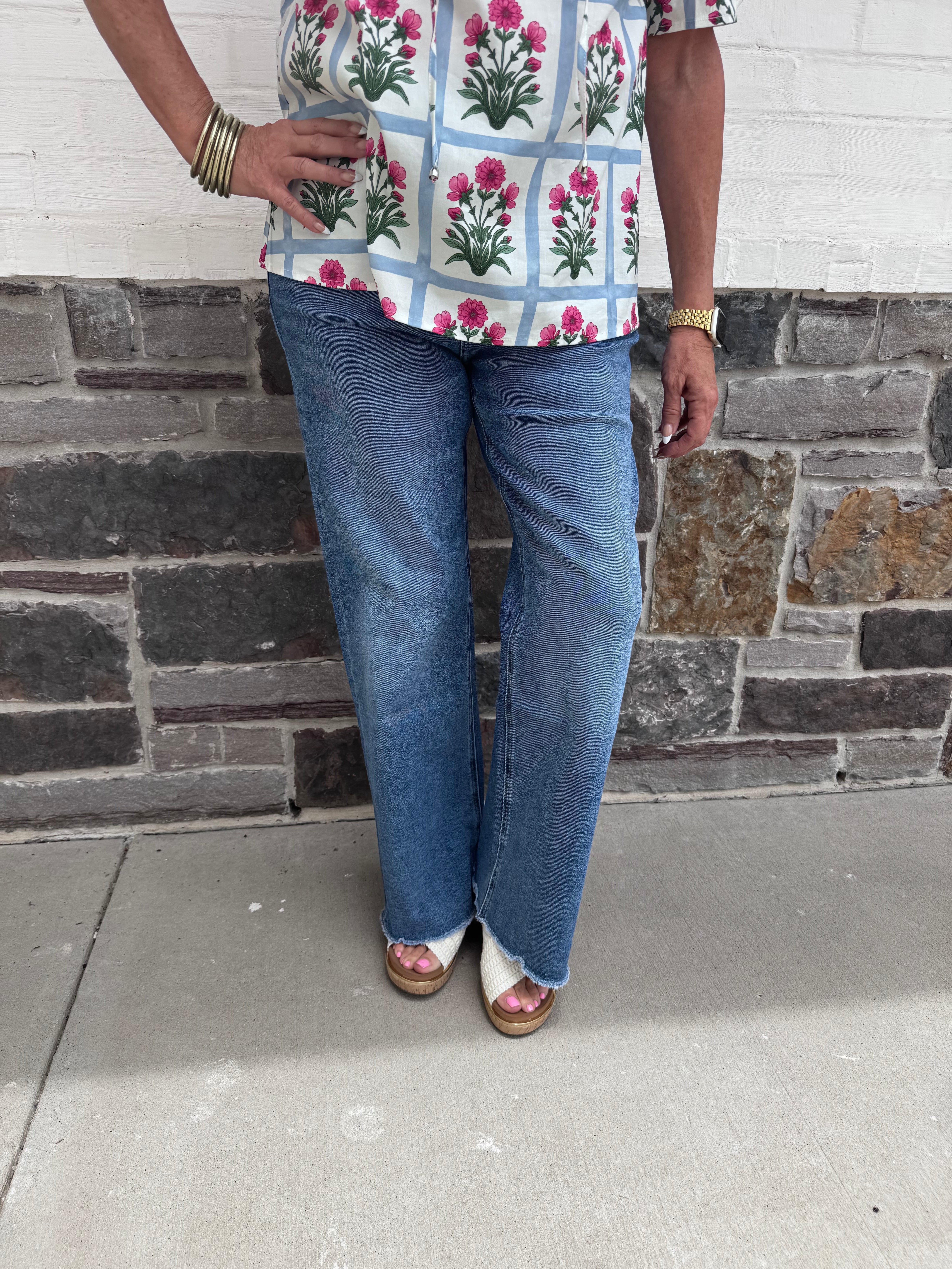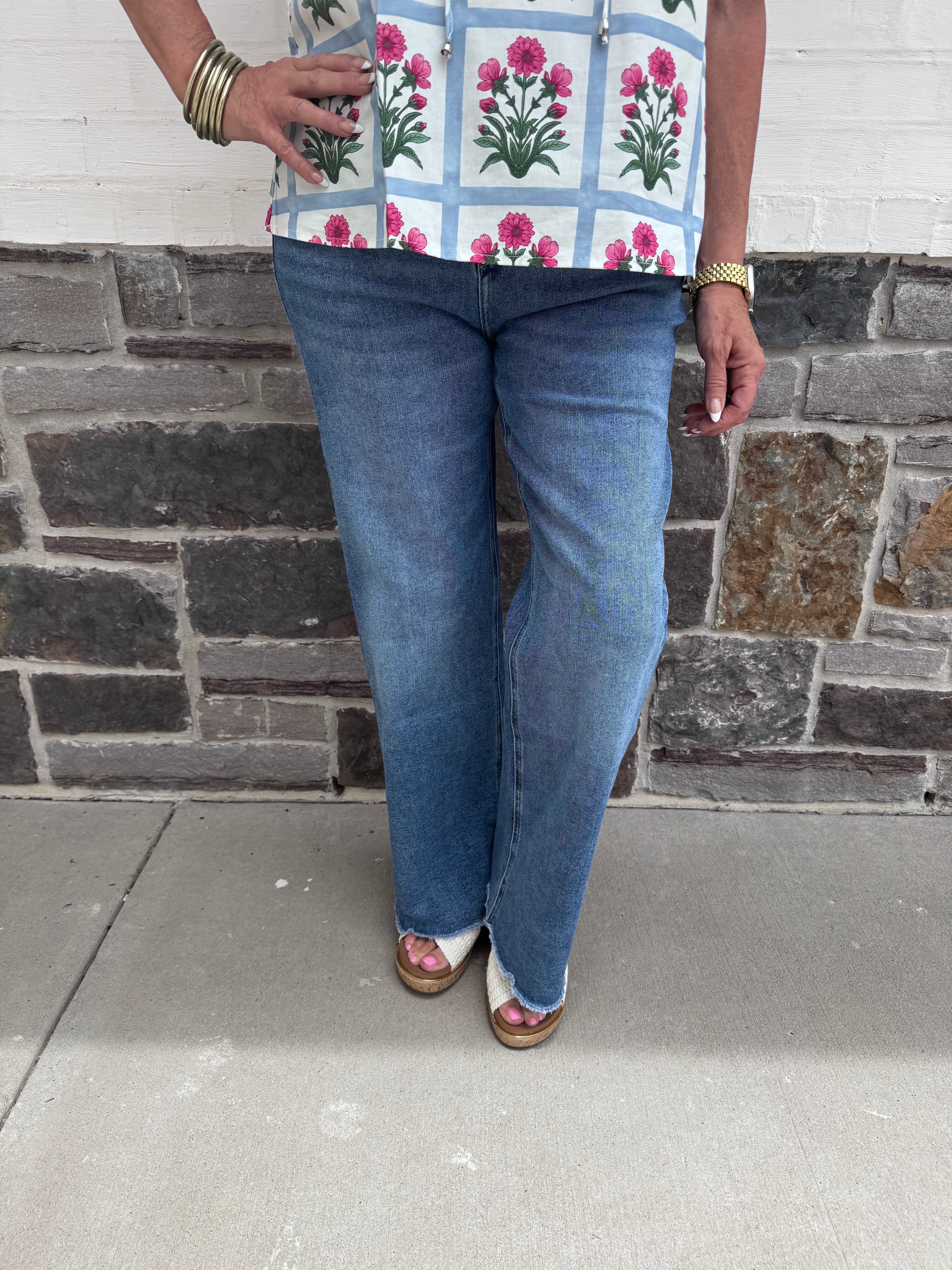 Experience the ultimate high with Mica Denim's Super High Wide Leg jeans. Made with 98% cotton and 2% spandex, these jeans offer a comfortable and stretchy fit. With a front rise of 11 inches, you'll feel confident and stylish in these wide leg jeans.