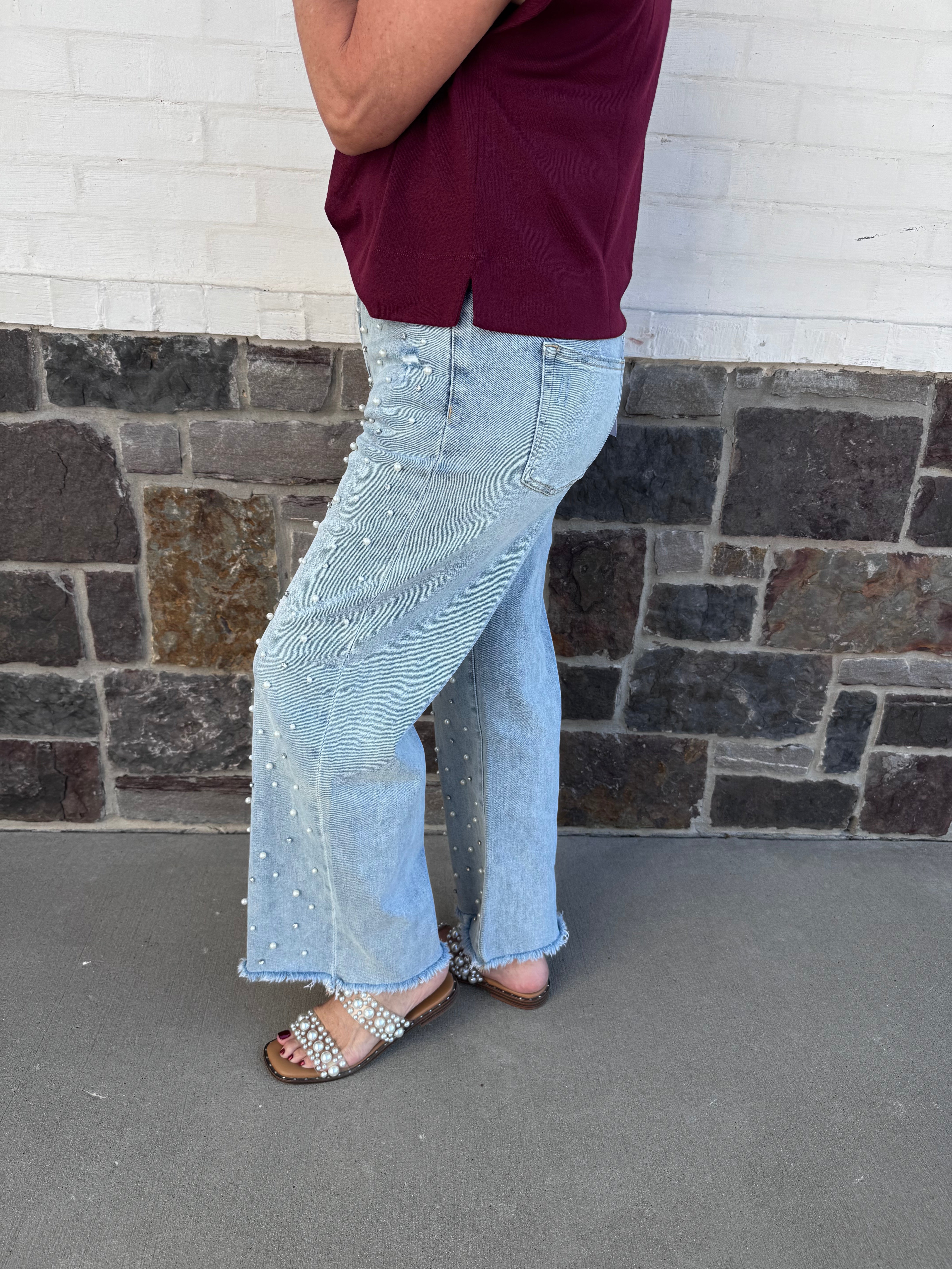Step into bold style with the Mica Denim High Rise Wide Leg Crop Jean, featuring eye-catching embellishments for extra flair. Crafted from a comfy blend of cotton, polyester, and spandex, these jeans offer the perfect mix of stretch and structure. The high-rise fit accentuates your waist, while the wide leg and cropped length add a playful, relaxed vibe—perfect for turning heads wherever you go!