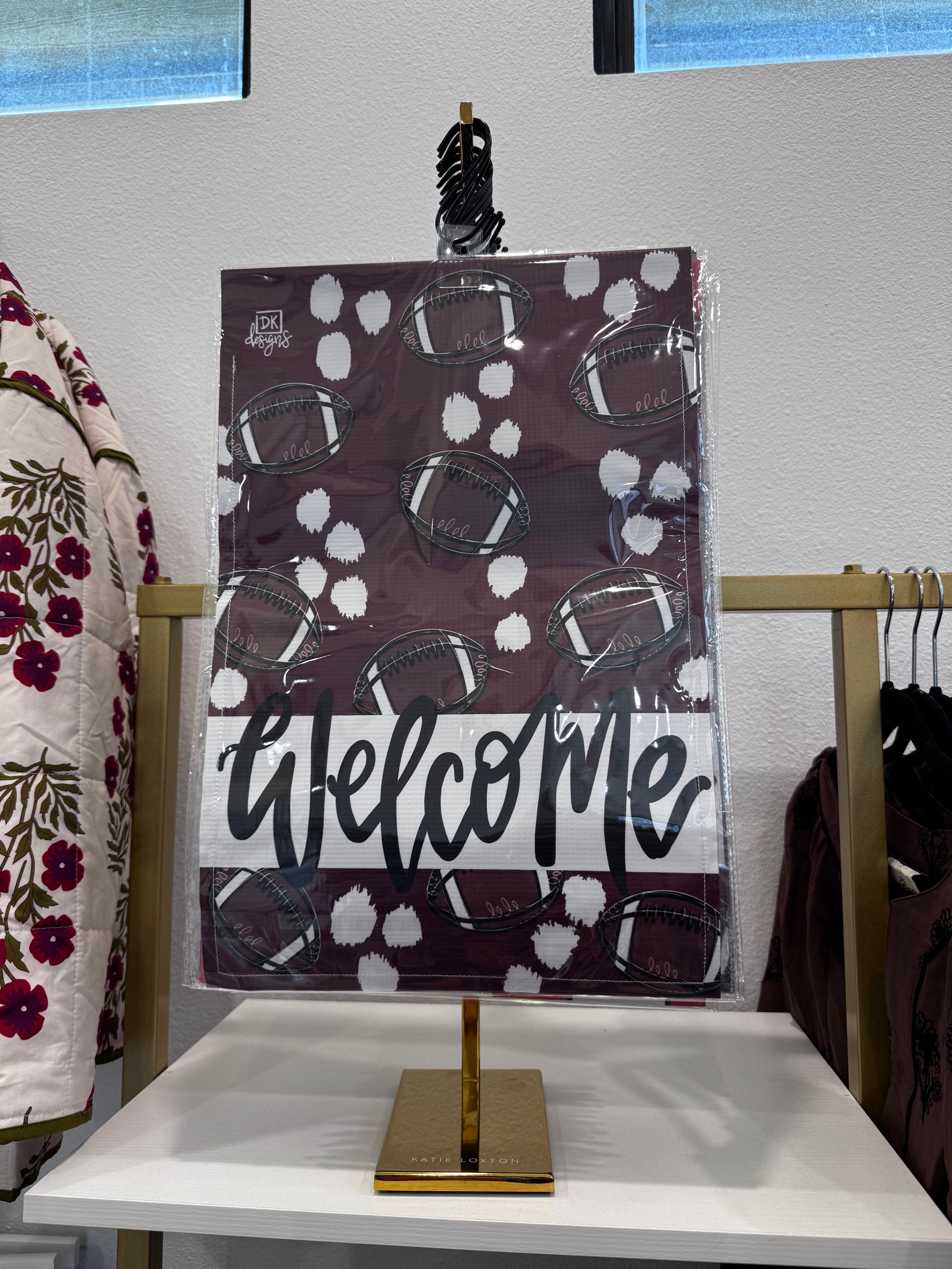 Dk Designs: Welcome Maroon + White Garden Flag