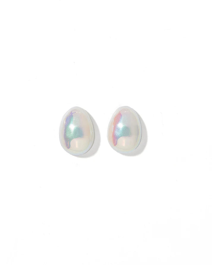 The Monica stud is a 20mm synthetic pearl stud on stainless steel earring post. Traditional earring back.