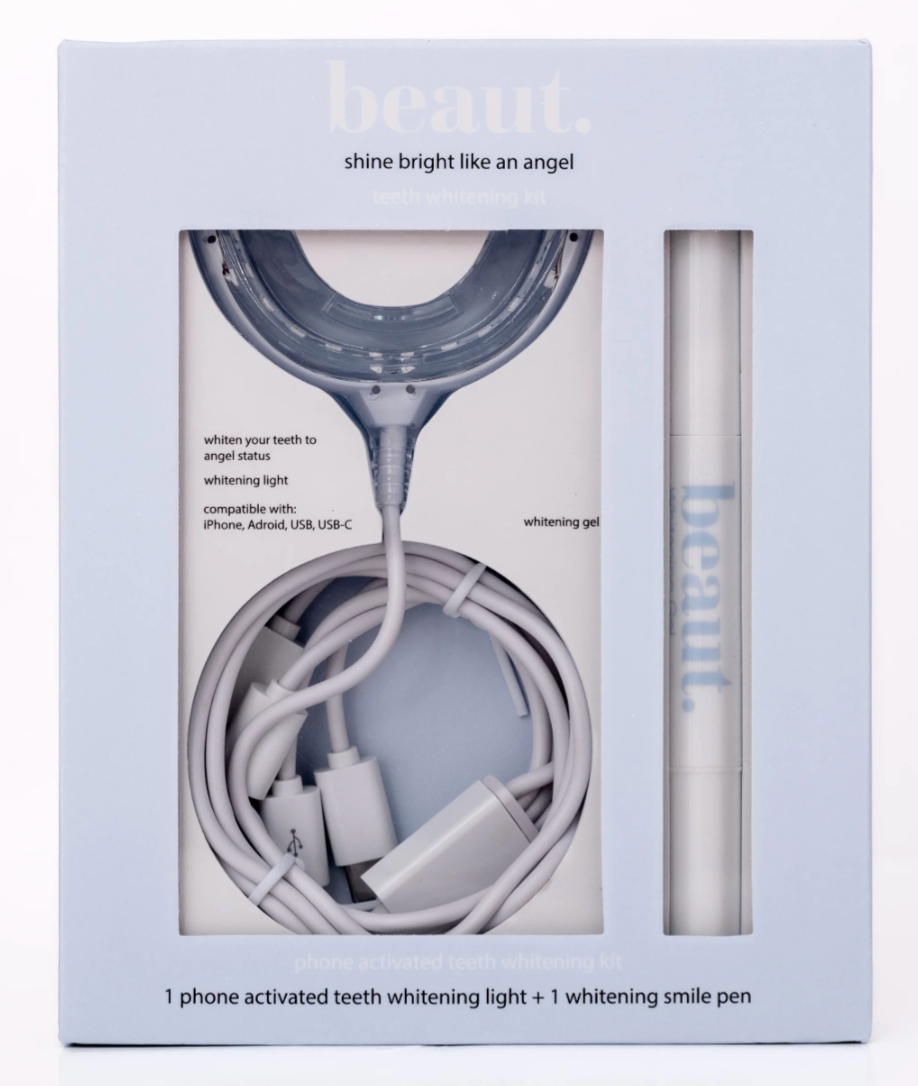 What: This kit is phone activated and features blue light therapy. On average each 15 minute session whitens your teeth 2-3 shades lighter.