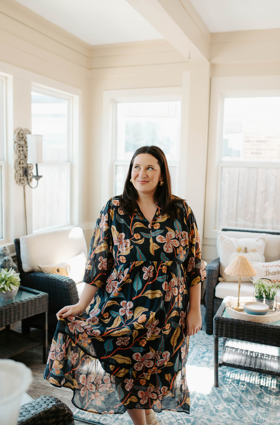 Step into playful elegance with the Charmed Forever Midi Dress. Featuring a flattering V-neck and flirty 3/4 sleeves, this dress boasts a charming tiered hem that adds twirl-worthy movement. Crafted with a soft lining, it promises comfort as you embrace every moment. Perfect for days when you want to feel effortlessly stylish and whimsically feminine.