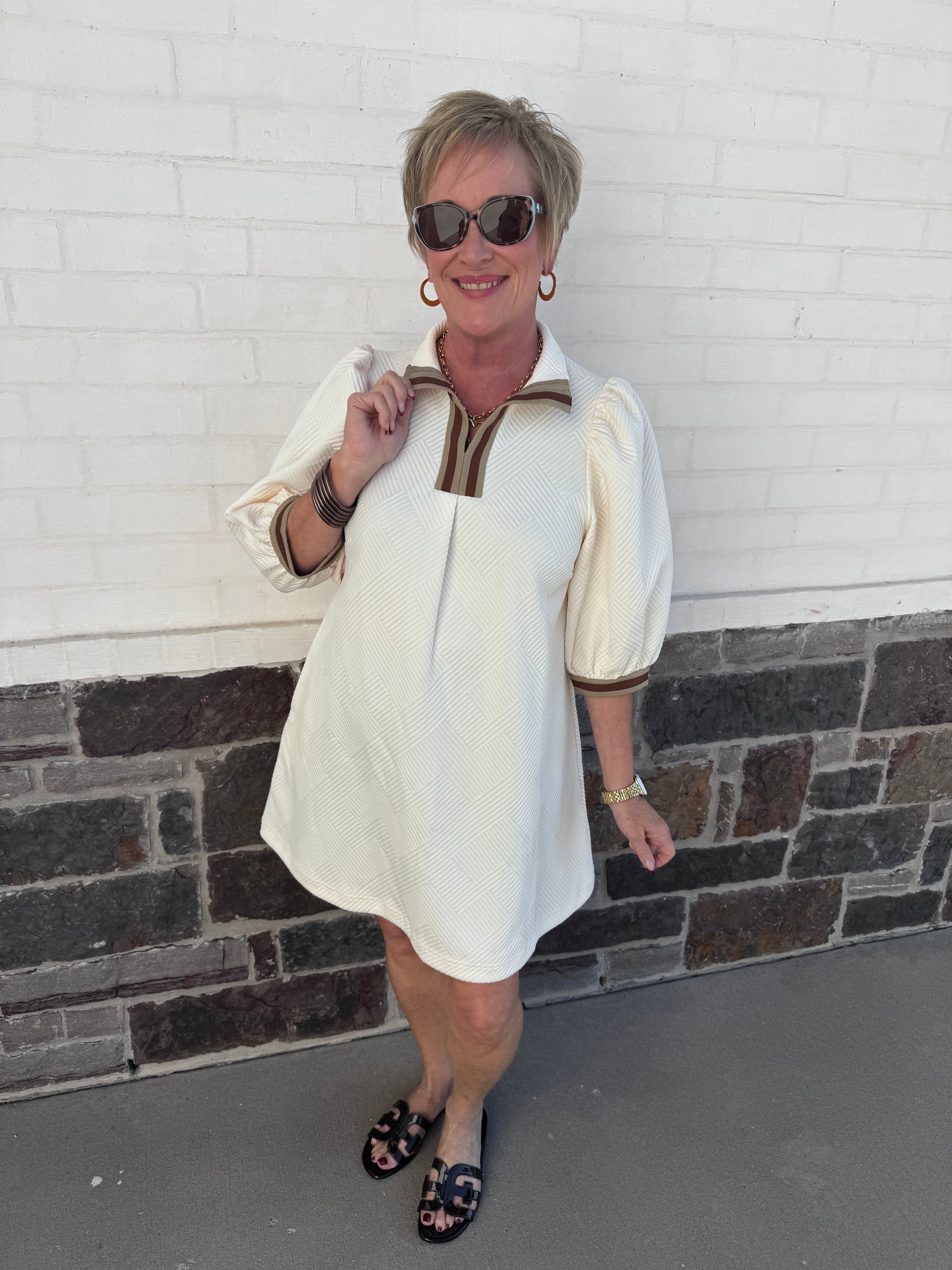 Step out in style with this High Neck Jacquard Mini Dress in cream! Crafted from textured jacquard fabric, it adds a fun twist to your wardrobe. With handy pockets and a sleek, unlined design, it’s perfect for showing off your playful side while staying comfortable. Dress it up or down for any occasion!