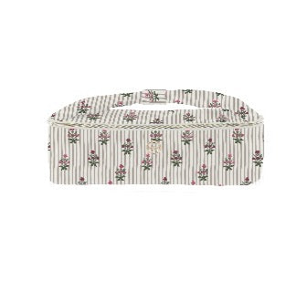 The Make Me Blush Cottage Stripes bag is your new playful travel buddy—wide enough to hold all your essentials yet compact enough to tuck into your tote or suitcase. Featuring a chic bow that doubles as a carry handle, this stylish bag pairs a solid exterior with a fun printed interior and gleaming gold hardware. Crafted from a comfy blend of nylon and polyester, it’s easy to clean and dries flat, ready for your next adventure in style.