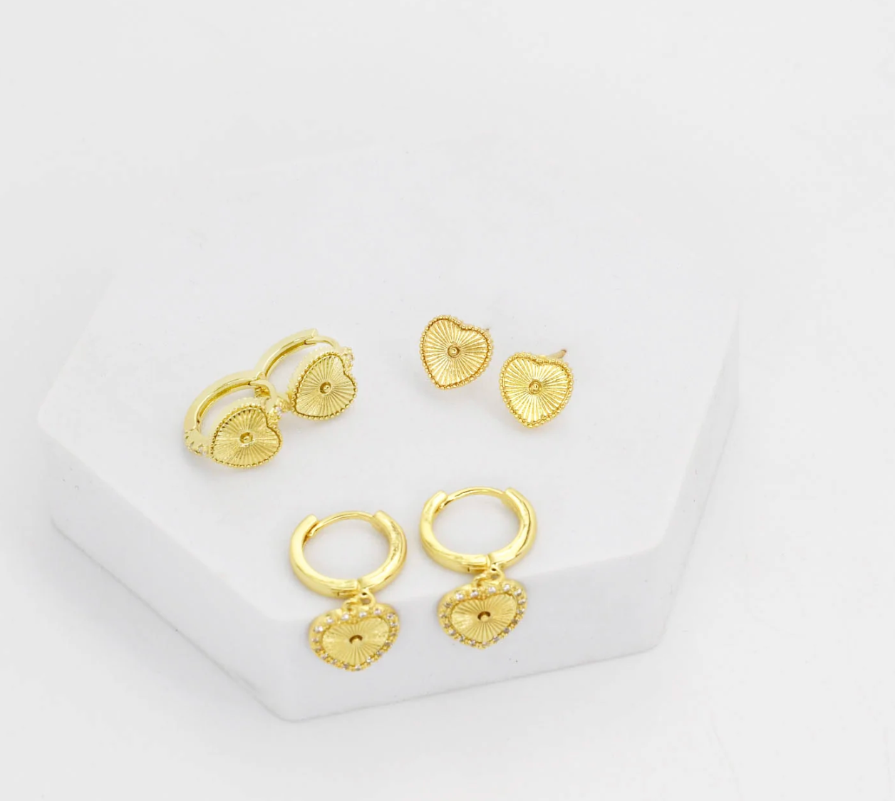 Spread the love with this delightful three-piece heart stud collection! Safe for sensitive skin with lead and nickel-free materials, you can wear them worry-free all day long. Each pair features a protective clear coating that keeps them sparkling and pristine. Mix and match these adorable hearts or rock them all at once for maximum cuteness!
