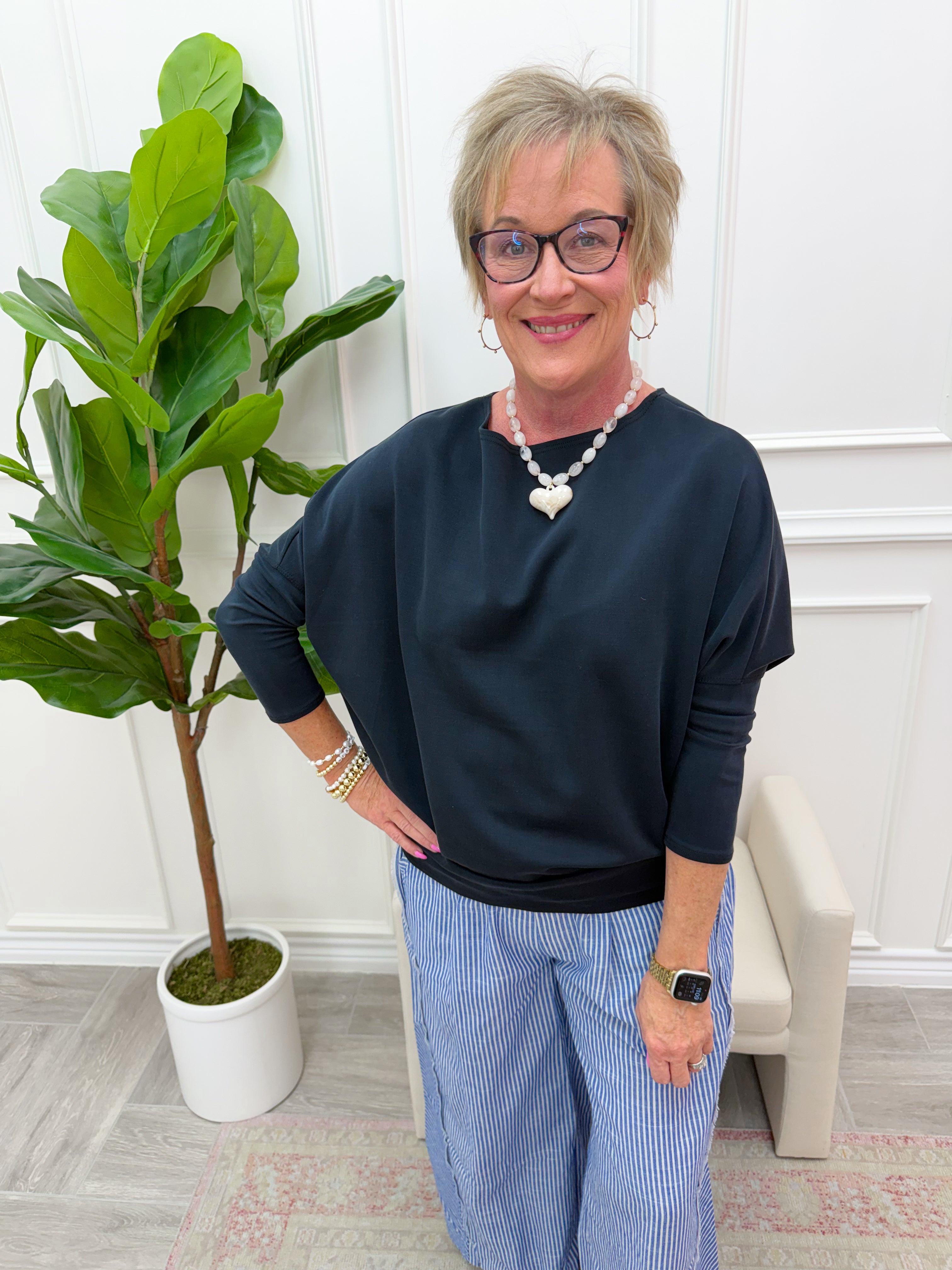 Slip into effortless elegance with the Cloud Nine Dolman Top, where comfort meets style. This scuba fabric tunic features relaxed dolman sleeves that drape beautifully and a classic boatneck neckline for a polished, put-together look. Perfect for layering or wearing solo, it's your new go-to piece for casual days that demand a touch of sophistication. Soft, stretchy, and undeniably chic.