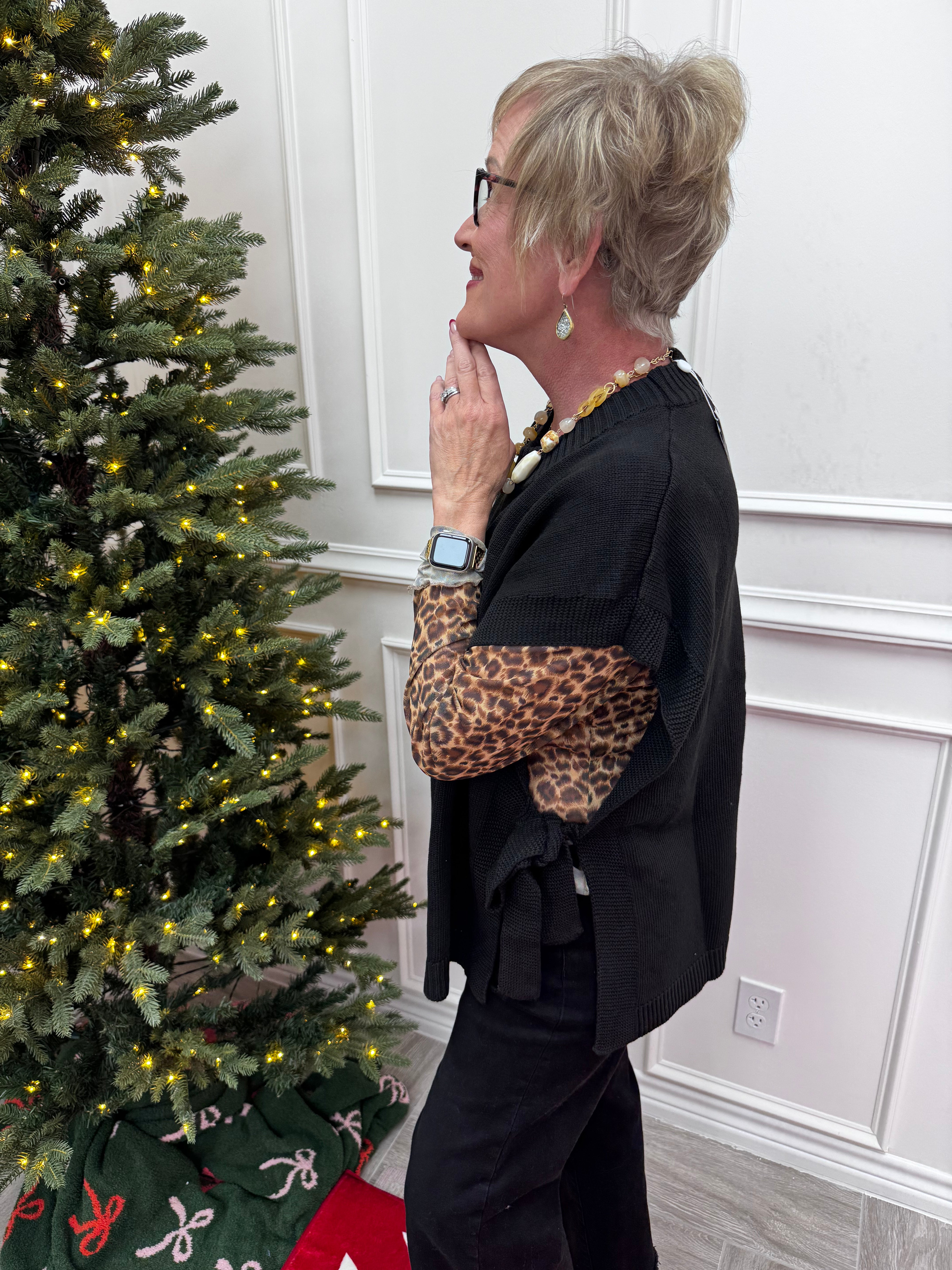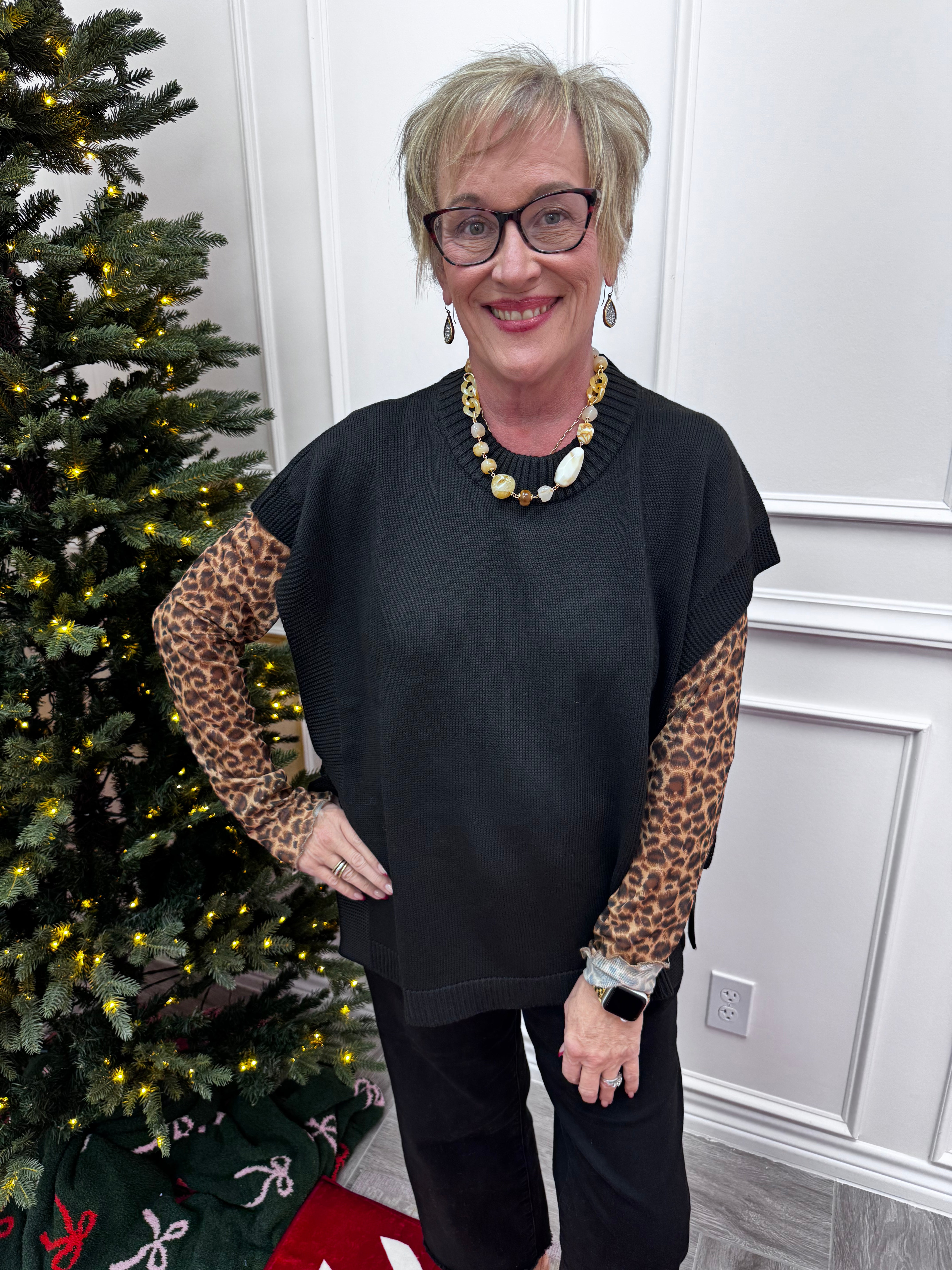 Stay cozy and stylish with the Tye Sweater Vest in Black! This acrylic knit vest features playful open sides tied with ribbed trims, adding a fun twist to your layering game. Measuring about 25" from shoulder to hem, it’s designed to fit most comfortably. Perfect for mixing and matching with your favorite tops for a chic, effortless look.