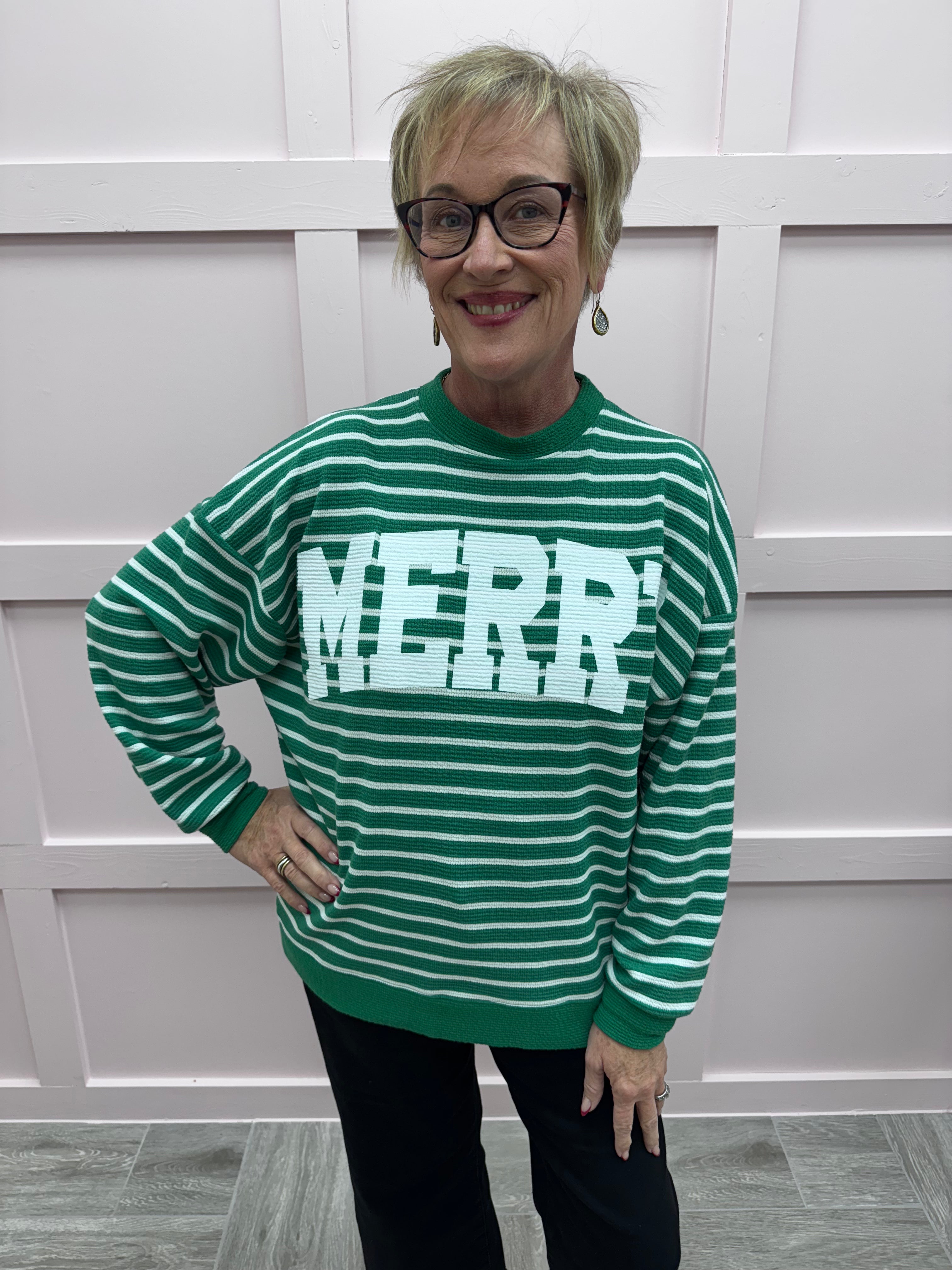 Get cozy and cheerful with the Very Merry Sweatshirt! Featuring playful stripes and a soft, cloudy knit fabric, this long-sleeve graphic sweatshirt adds a fun pop of color to your casual look. Perfect for chilly days when you want to stay warm and spread good vibes, it’s your new favorite holiday season essential.