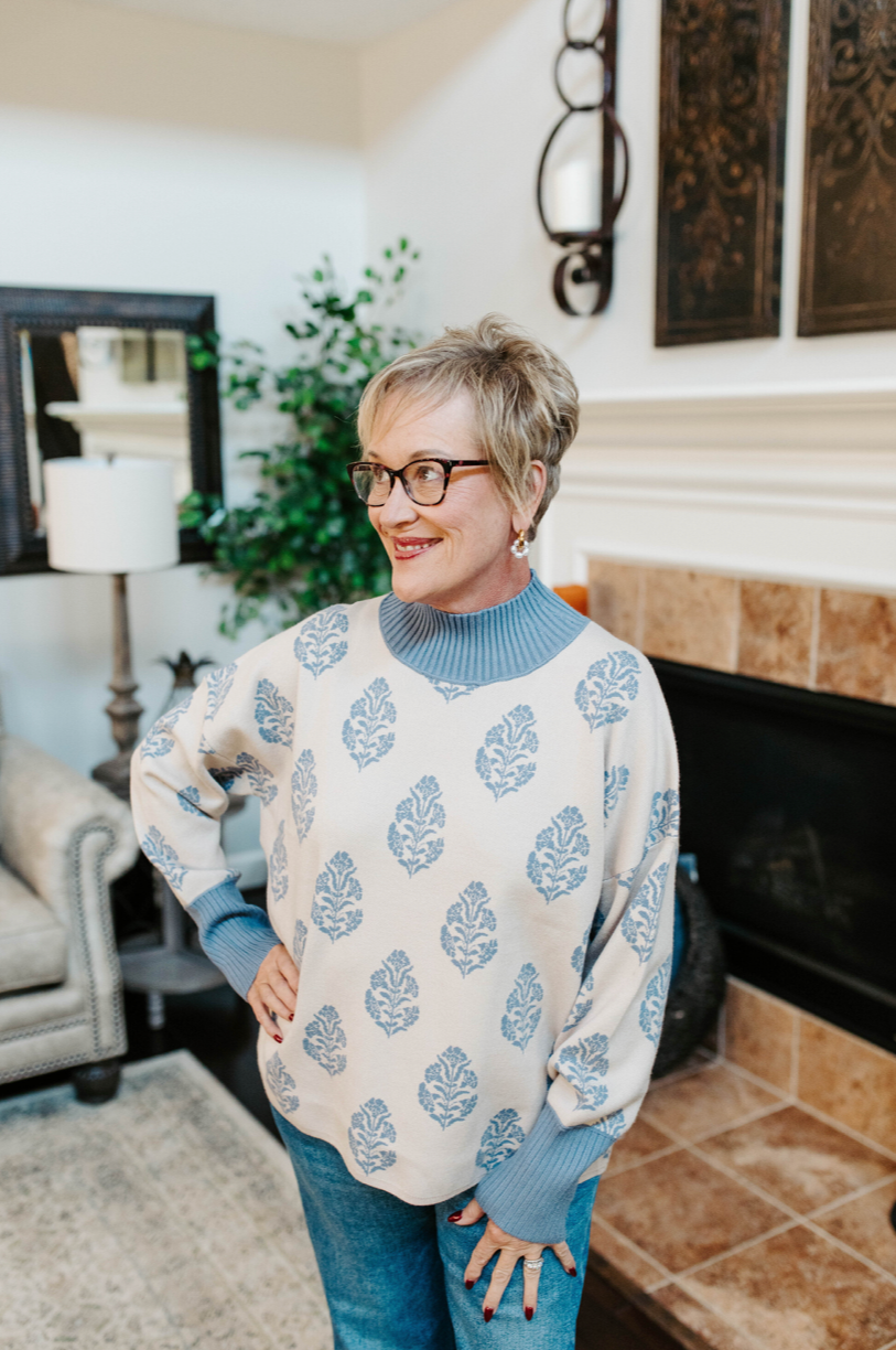Bring charm to your everyday look with the Wren Mock Neck Knit Top. This playful long-sleeve knit features a delightful botanical print and a contrasting ribbed mock neck for a fun twist. With ribbed cuffs and medium-weight non-sheer fabric, it’s cozy yet breathable—perfect for layering or wearing solo on breezy days. Add a splash of nature-inspired style to your wardrobe!