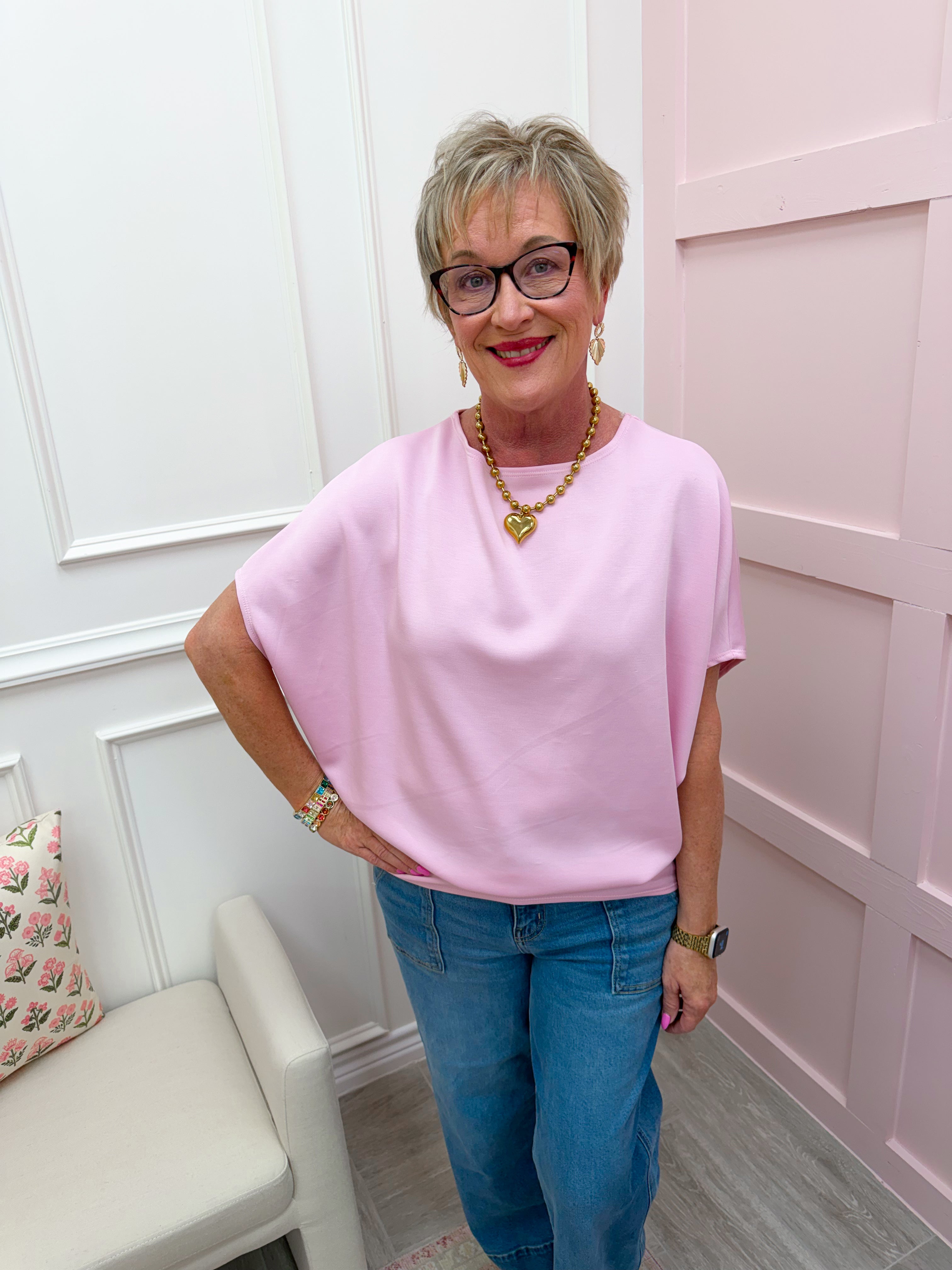 Our bestselling All Day Scuba Top is your new wardrobe MVP! This effortlessly chic piece features a modern oversized silhouette that drapes beautifully while our signature scuba fabric keeps things structured and polished. The classic round neckline and short sleeves make it endlessly versatile—layer it over a tee, pair it with your favorite jeans, or dress it up for a night out. Comfortable enough for all-day wear, stylish enough for anything. Your go-to top just got even better.