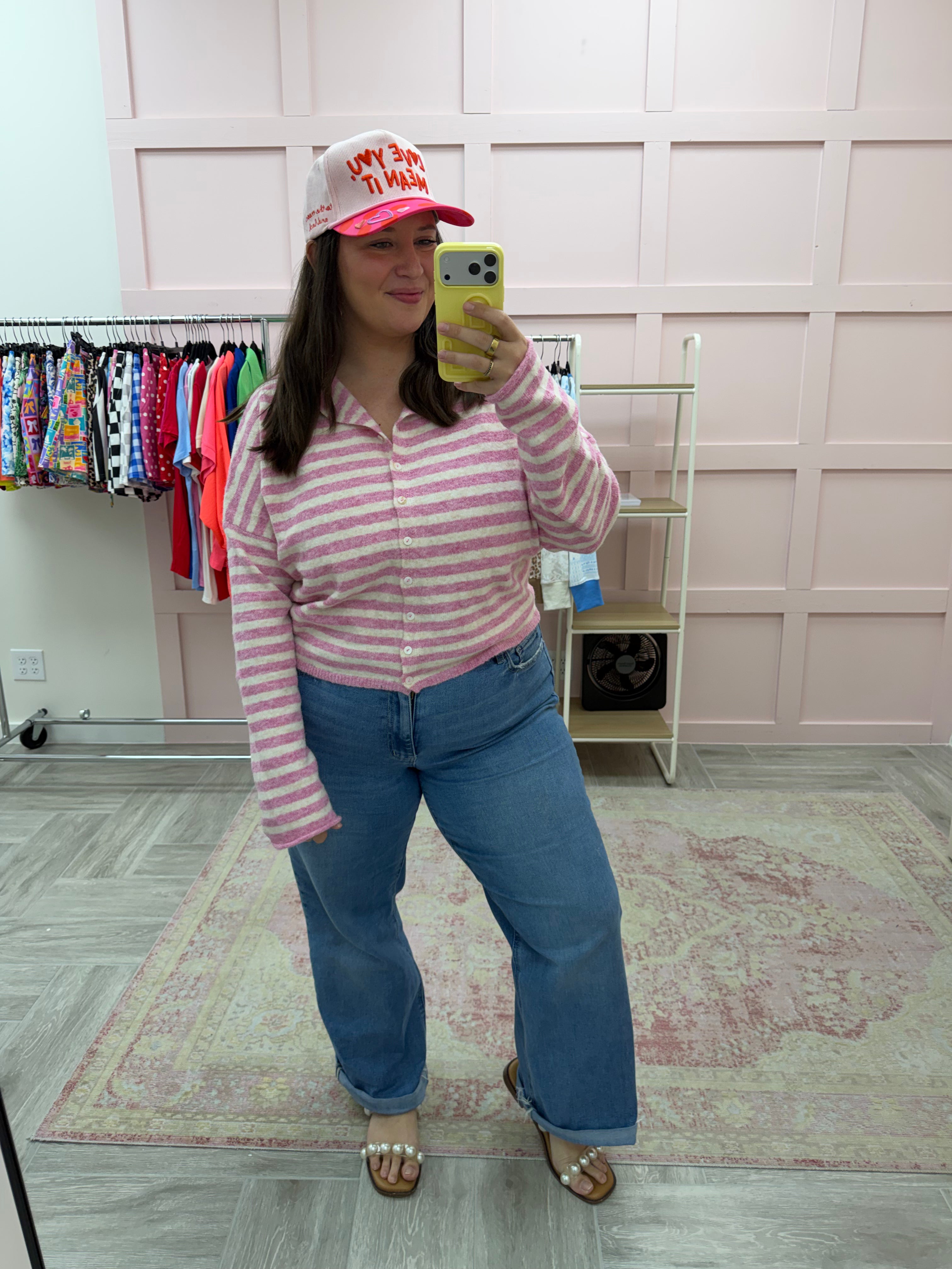 Piper Cardigan: Bubblegum Stripe
