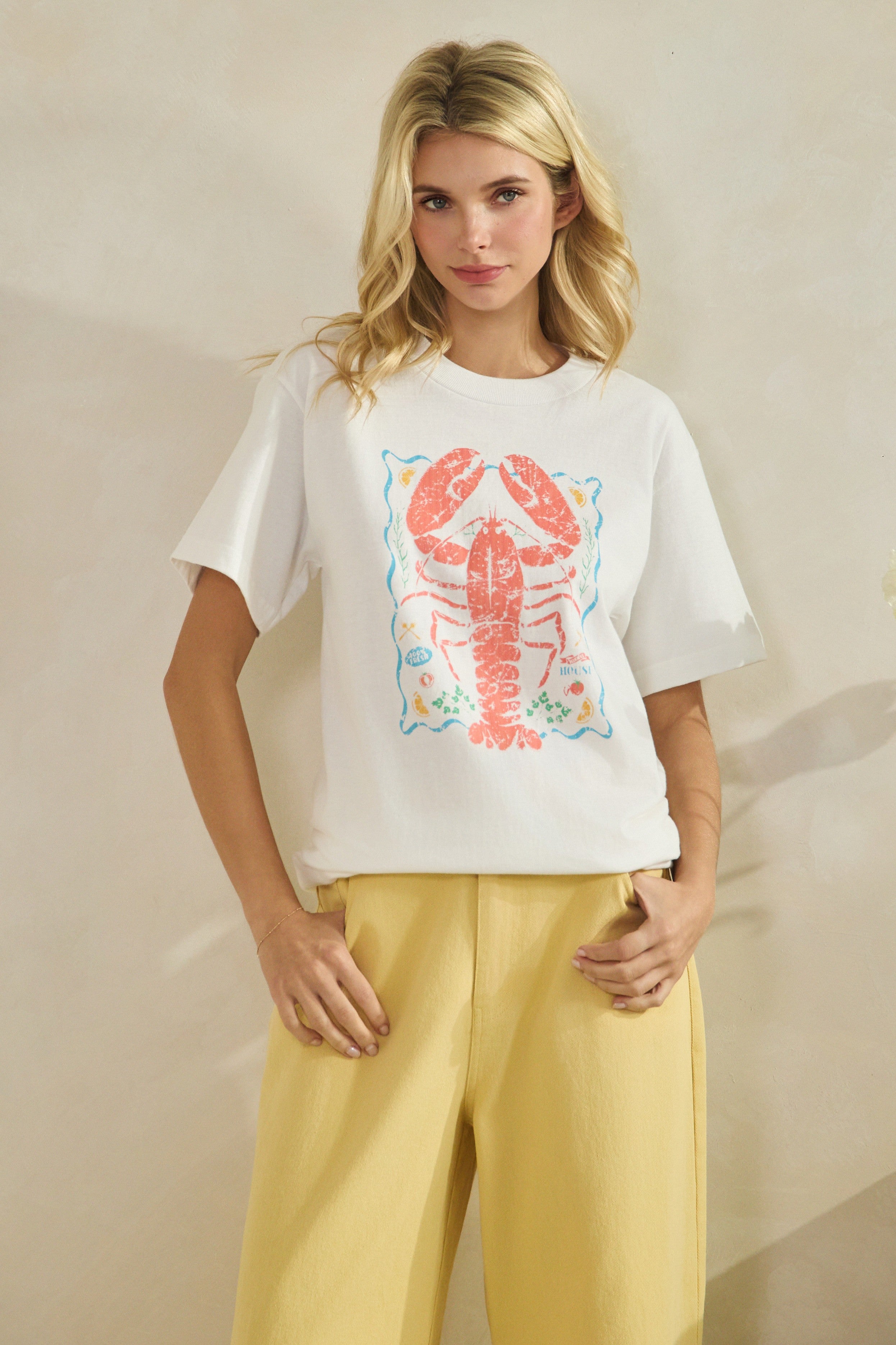 Dive into coastal charm with this short sleeve graphic tee featuring a whimsical lobster design that brings vintage seaside vibes to your everyday wardrobe. Crafted from soft, lightweight fabric with a classic crew neckline, it's the ultimate go-to for relaxed comfort. Whether you're pairing it with shorts for a beach day, throwing it over a tank, or keeping it casual with lounge pants, this tee delivers effortless style that works from morning coffee runs to weekend adventures. Pure laid-back fun.