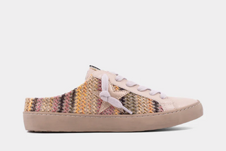 The POLKA in Multi Stripe is a perfect blend of vibrant charm and earthy sophistication. Featuring a woven design with warm pinks, golds, and oranges, grounded by rich browns and muted yellows, this mule-style sneaker is as versatile as it is eye-catching. The metallic gold star accent adds a hint of sparkle, while the soft faux-leather trim and cushioned rubber sole ensure all-day comfort. Slip into the POLKA in Multi Stripe to elevate casual denim or complement dressier looks with its artful, balanced palette.