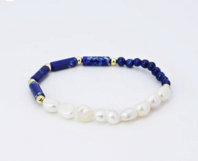 Make a splash with this stretchy bracelet featuring gorgeous blue beads kissed with gleaming gold accents for that perfect pop of pizzazz. Slip it on and let the cool, calming vibes mixed with golden sparkle brighten your day. Stack it, swap it, or rock it solo—this little treasure is your ticket to effortless style and endless fun.
