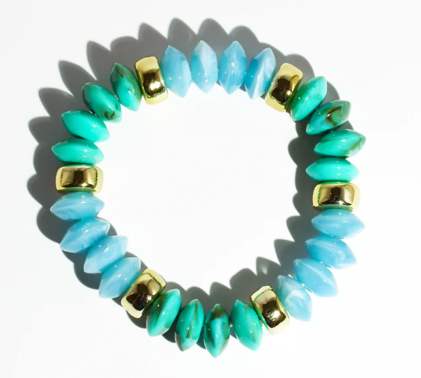Make a splash with this stretchy bracelet featuring gorgeous blue beads kissed with gleaming gold accents for that perfect pop of pizzazz. Slip it on and let the cool, calming vibes mixed with golden sparkle brighten your day. Stack it, swap it, or rock it solo—this little treasure is your ticket to effortless style and endless fun.